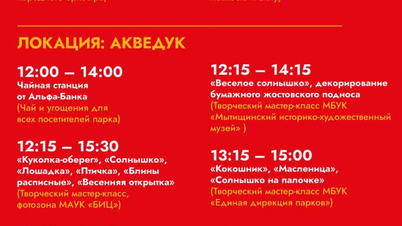 Скорее смотрите нашу полную программу, а ниже расскажем об основных блоках нашей Масленицы… и не только в парках