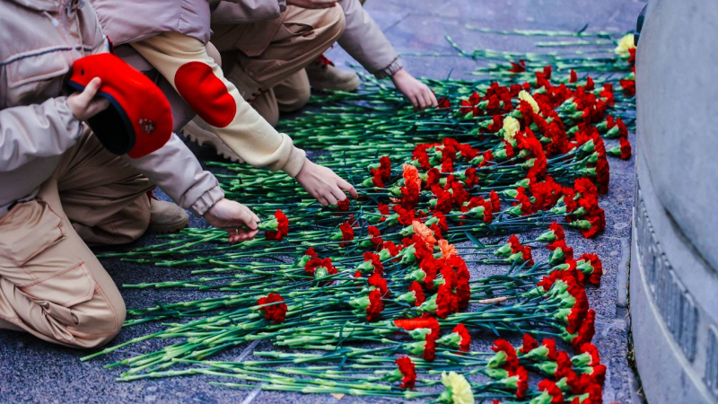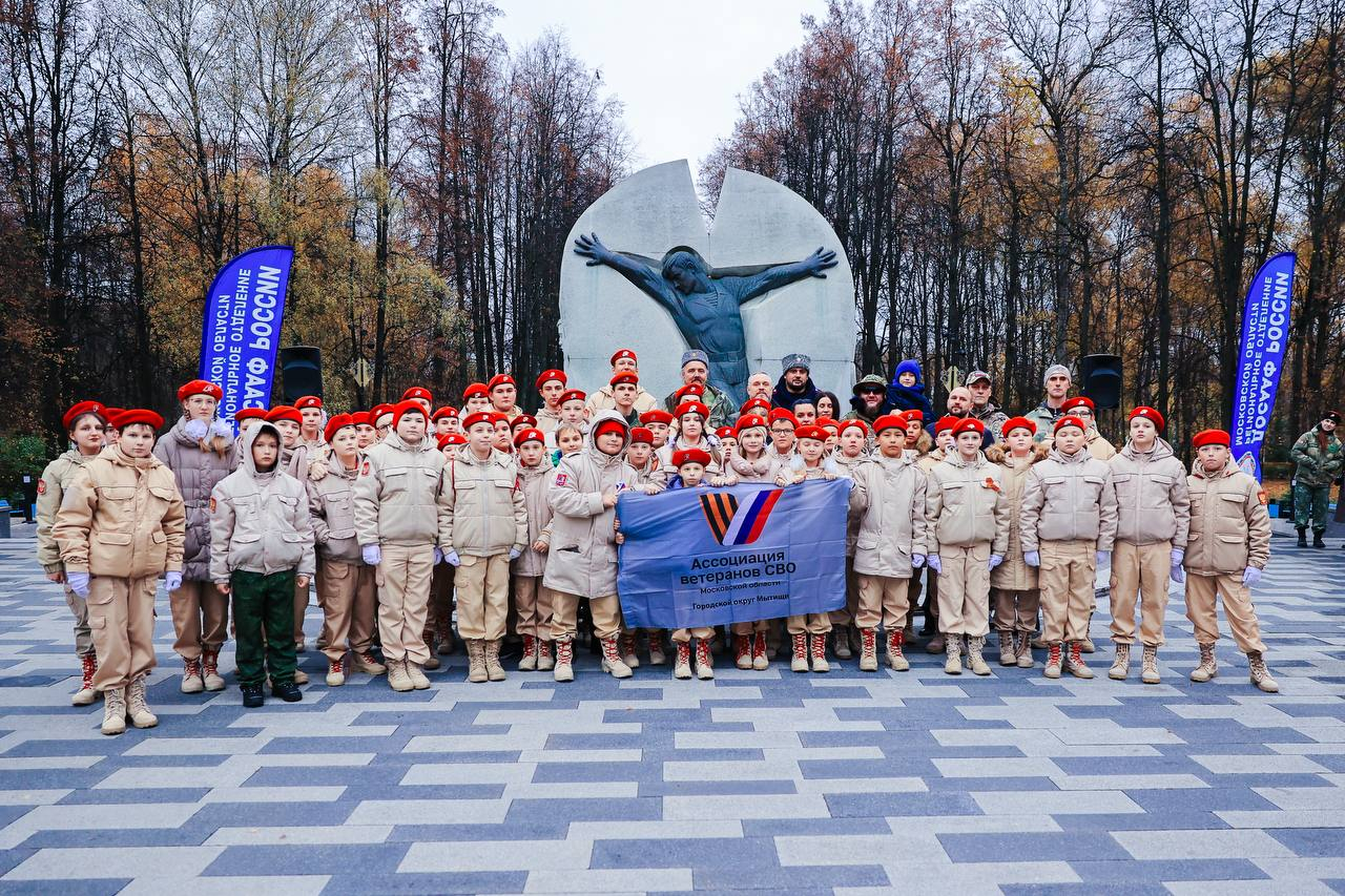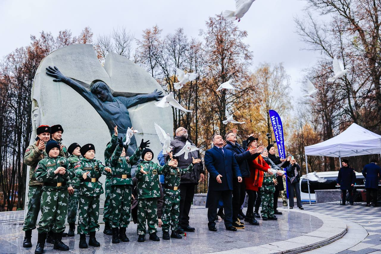 В память о павших бойцах возложили цветы к памятнику мытищинцам, погибшим при исполнении воинского и служебного долга в локальных конфликтах, символически выпустили в небо голубей.