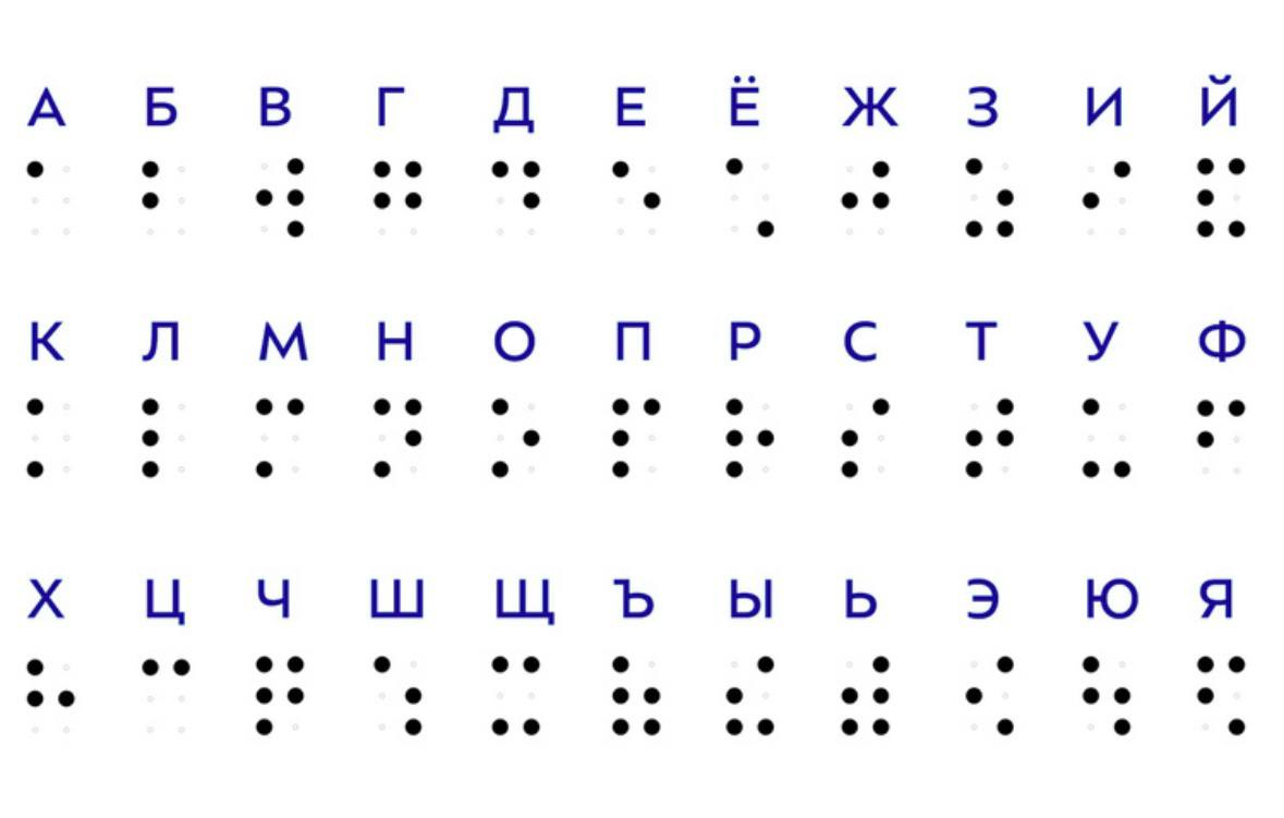 В основе азбуки тактильный рельефно-точечный шрифт. Это система кодирования букв и цифр при помощи определённых комбинаций выпуклых точек.