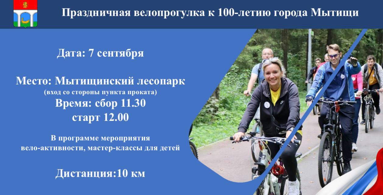 7 сентября состоится праздничная велопрогулка в честь 100‑летия города Мытищи!