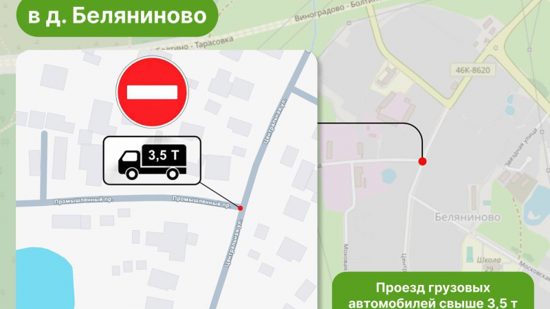 Вниманию водителей: ограничение движения грузового транспорта в д. Беляниново