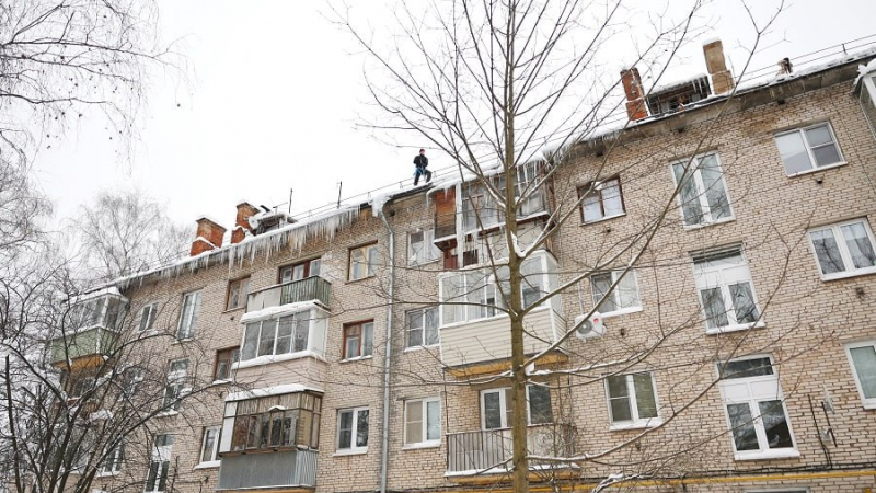 В Мытищах активно чистят крыши домов