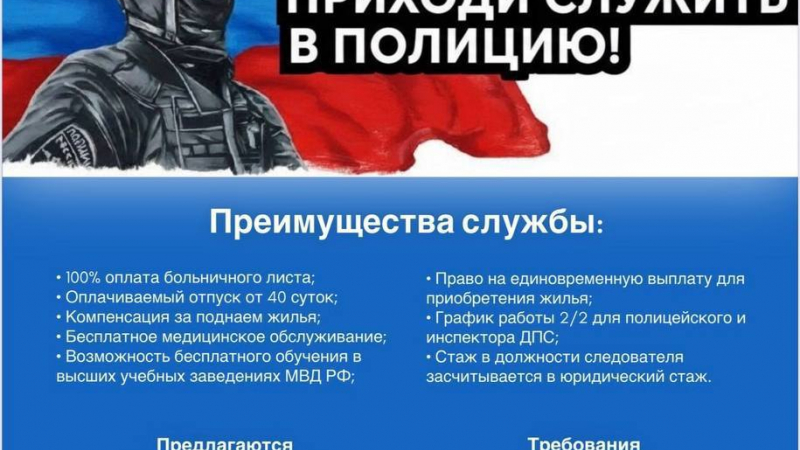 МУ МВД России «Мытищинское» приглашает на службу граждан РФ