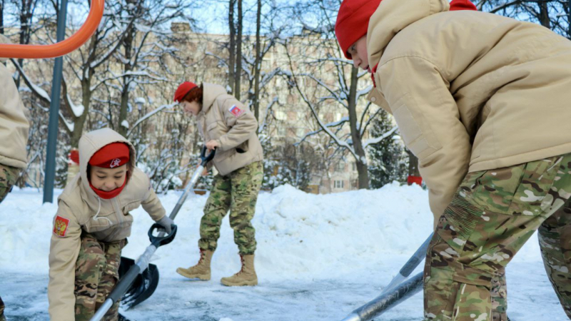 Мытищинские юнармейцы вновь приняли активное участие в уборке снега