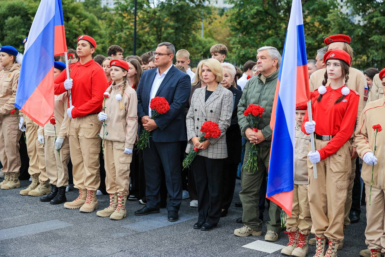Совместно с юнармейцами, депутатским корпусом и жителями округа почтили память жертв страшной трагедии в школе Беслана минутой молчания и возложили цветы к Вечному огню.