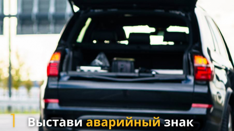 -  по возможности прижмитесь к обочине и установите аварийный знак