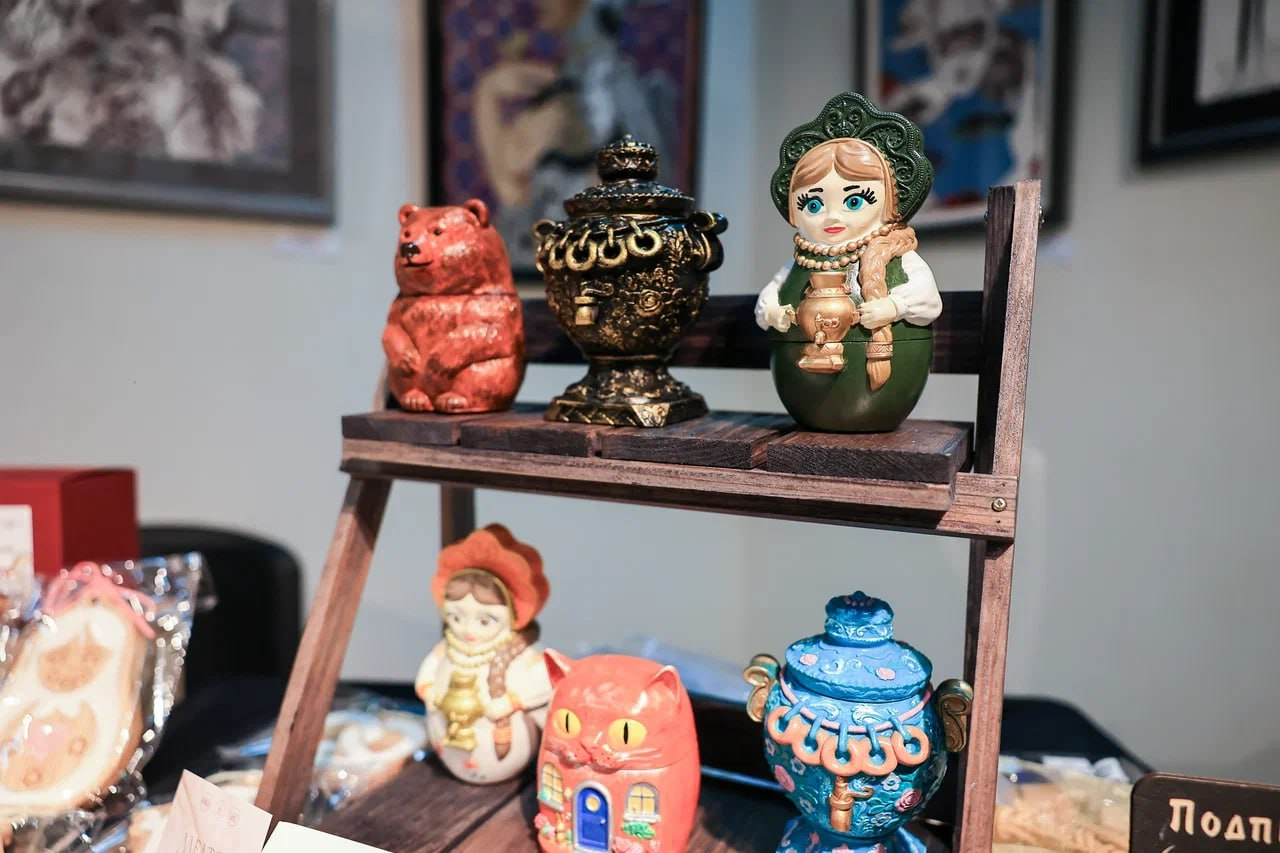 На дизайн-маркете «Сезон ежевики» можно было найти уникальные рукотворные новогодние подарки и сувениры. Здесь были представлены разнообразные изделия: елочные игрушки, мягкие и керамические игрушки, бижутерия, ароматическое мыло, свечи и сладости. Каждый предмет был не просто вещью, а воплощением мастерства и души его создателя.