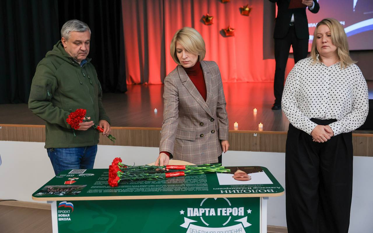 В рамках партийных проектов «Новая школа» и «Историческая память» в мытищинской школе № 32 в Год защитника Отечества, в честь нашего земляка Александра Владимировича Володина, открыли парту героя, который при выполнении воинского долга погиб в зоне проведения спецоперации