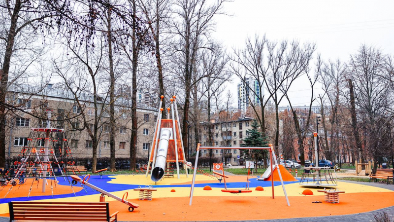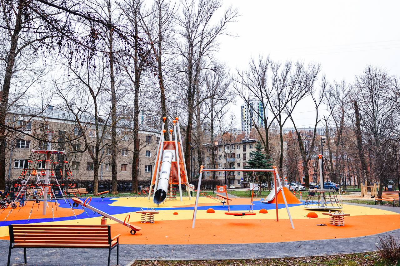 Аллея Ветеранов – настоящая точка притяжения. Важно было учесть, что сюда любят приходить жители разных возрастов. Для удобства предусмотрели в сквере несколько зон: для прогулок, отдыха, а также современную игровую площадку. Здесь каждый найдет занятие по душе.