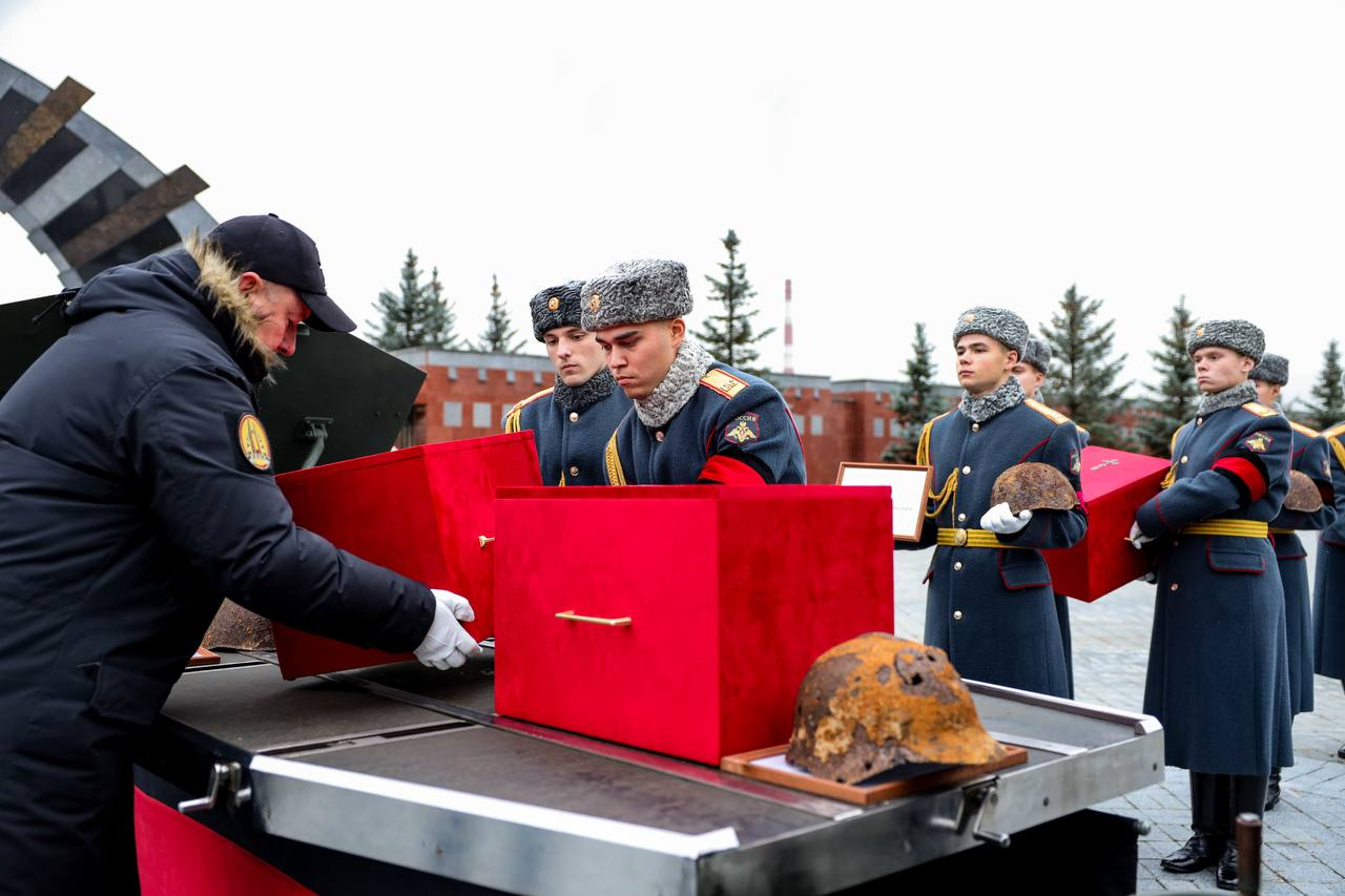 В траурном зале Федерального военного мемориала состоялась церемония передачи останков бойцов РККА, погибших в годы Великой Отечественной войны. Благодаря личным вещам, найденным поисковыми отрядами, удалось установить личности героев.