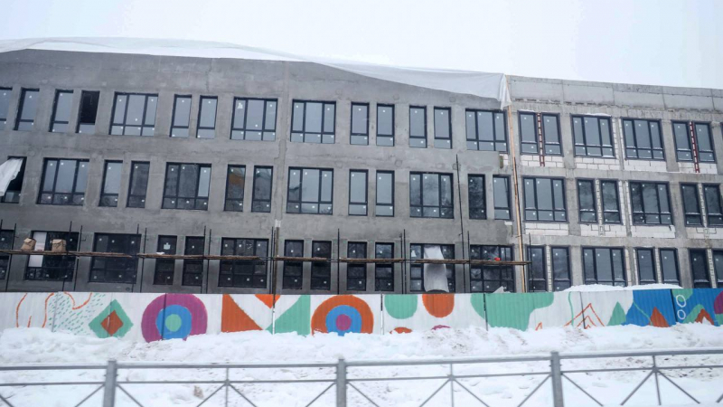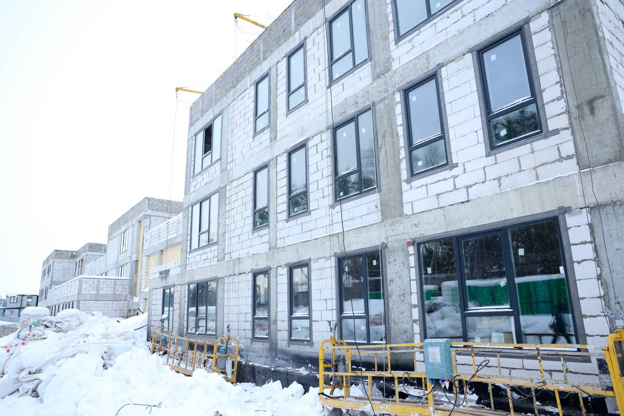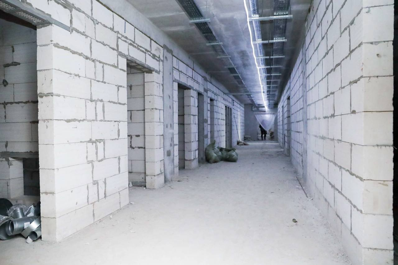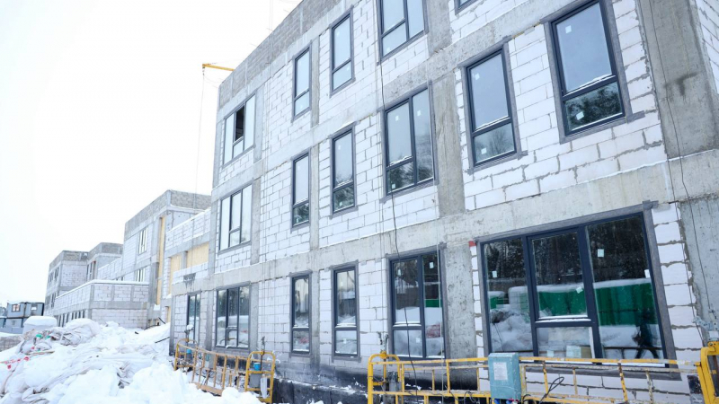 На сегодняшний день проведены монолитные, кладочные и кровельные работы. Сделано остекление и завезены витражные конструкции центральной входной группы. Строители выполнили разводку магистральных инженерных систем внутри здания и заканчивают черновые отделочные работы.