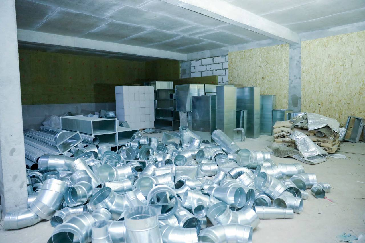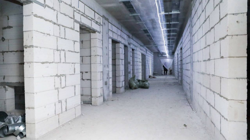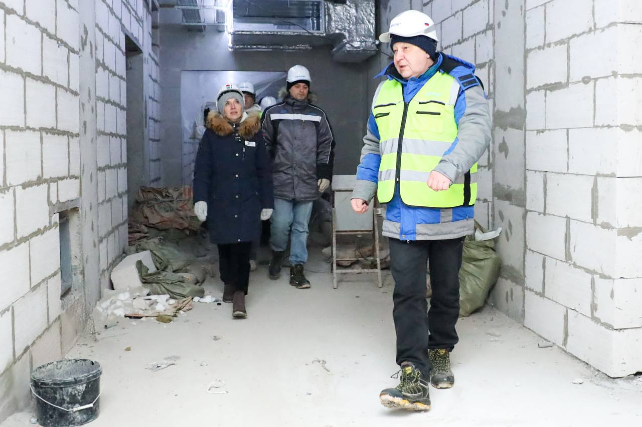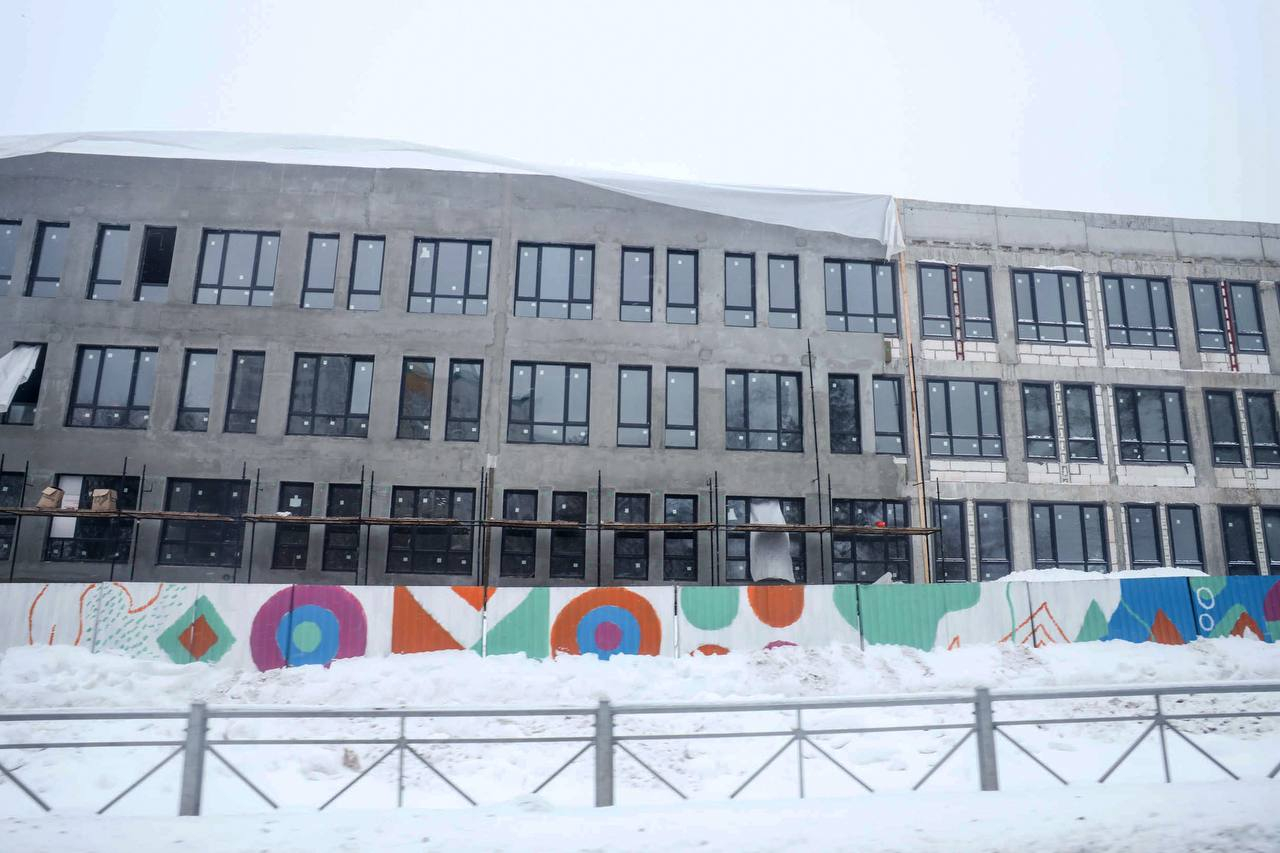 На сегодняшний день проведены монолитные, кладочные и кровельные работы. Сделано остекление и завезены витражные конструкции центральной входной группы. Строители выполнили разводку магистральных инженерных систем внутри здания и заканчивают черновые отделочные работы.