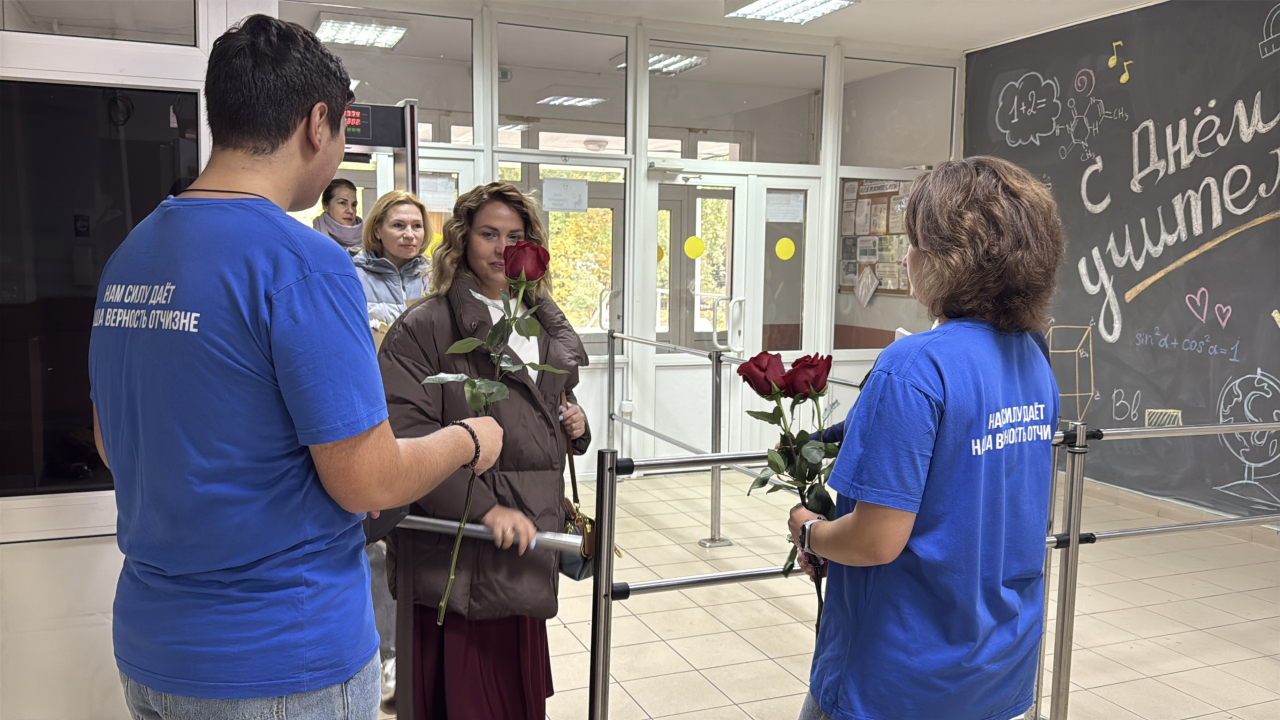 В преддверии Дня учителя активисты «Молодой Гвардии» организовали трогательную акцию в школах округа. Ребята встречали педагогов у входа в учебное заведение и вручали им цветы в знак благодарности и уважения.