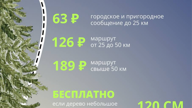 Стоимость перевозки елки в автобусе зависит от маршрута: в городском транспорте – 63 рубля, в пригородном (до 25 км) – тоже 63 рубля, на расстояние от 25 до 50 км – 126 рублей, дальше 50 км – 189 рублей. Если дерево мешает посадке пассажиров, водитель имеет право отказать в его провозе.