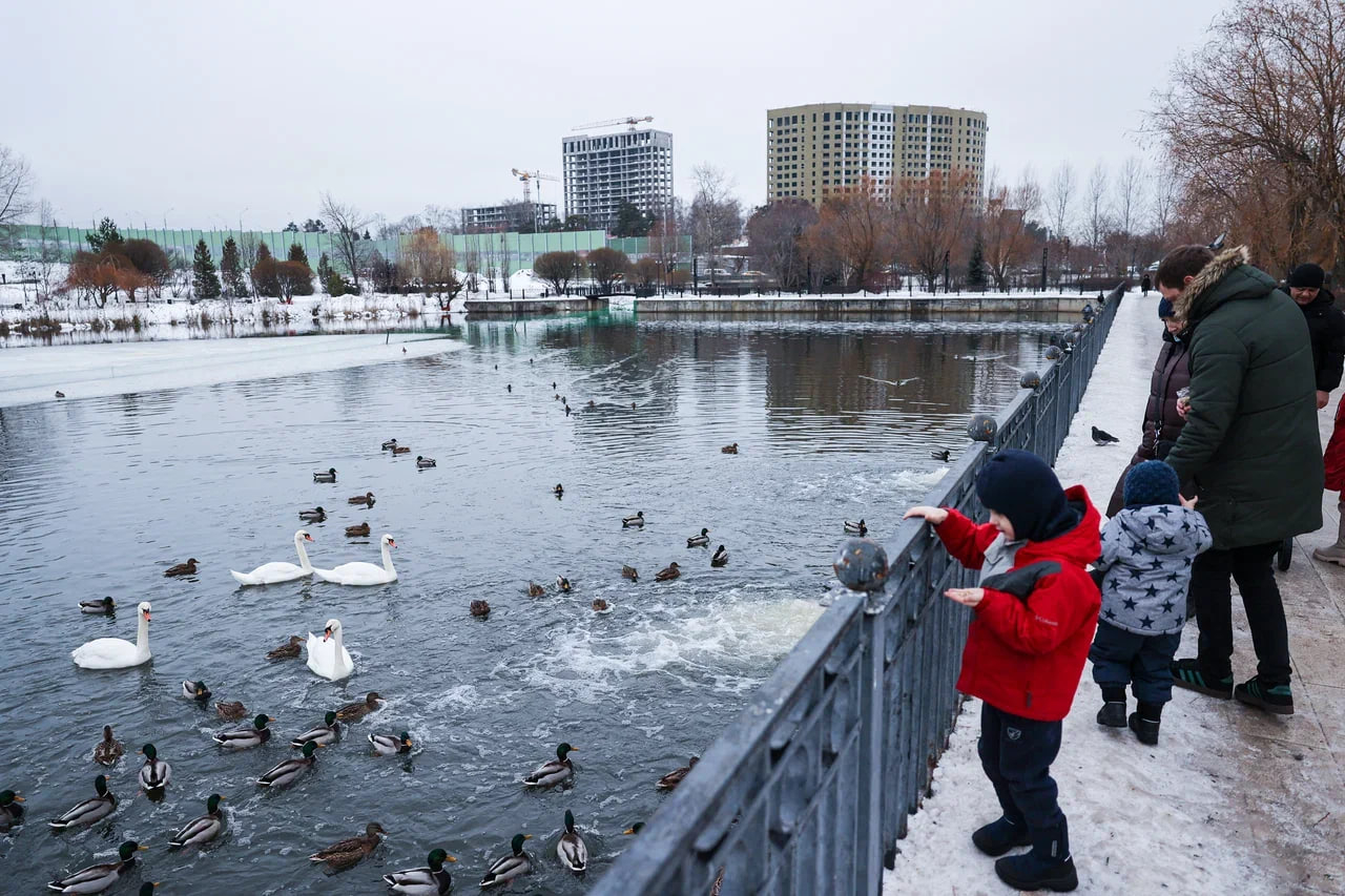 Лебеди успешно пережили первые суровые морозы. Регулярное кормление и наличие открытой воды – это два ключевых фактора, которые помогают птицам комфортно переживать зиму. Благодаря сбалансированному рациону они сохраняют силы и здоровье, а незамерзающая вода позволяет им поддерживать естественную активность. Аэраторы, установленные на реке, успешно выполняют свою задачу. Они размывают лед и обеспечивают открытую воду для поддержки экосистемы. Благодаря этим устройствам акватория остается частично свободной ото льда, что особенно важно для зимовки наших водоплавающих птиц.