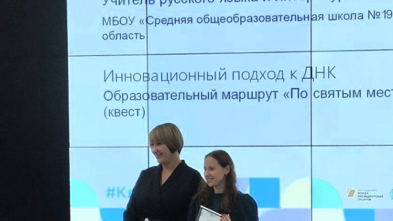 Среди награжденных – учитель русского языка и литературы из мытищинской школы № 19 Наталья Белова. Разработанный ею красочно иллюстрированный сборник заданий для образовательного квеста по православным местам получил специальный приз жюри в номинации «Инновационный подход к ДНК», подноминация: «Образовательный маршрут «По святым местам» (квест)».