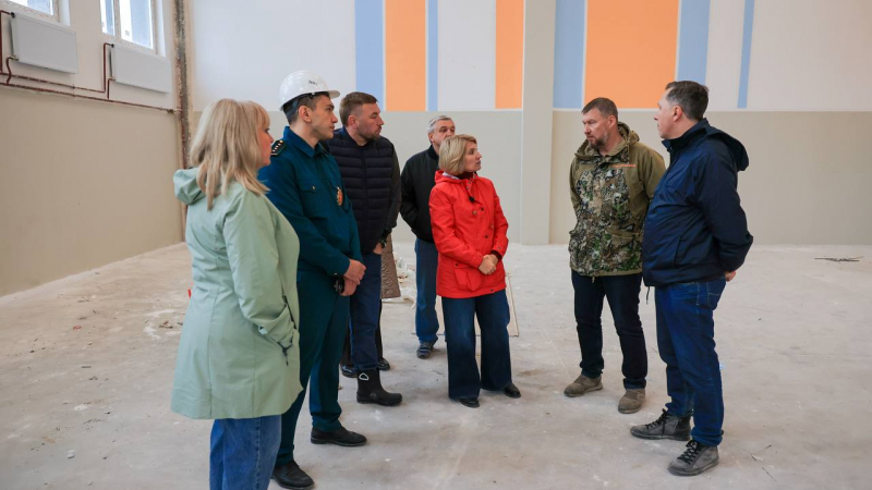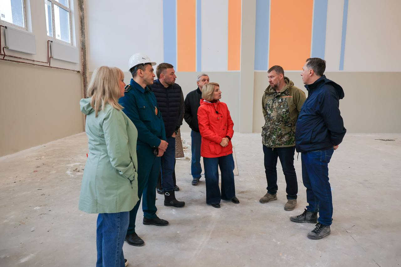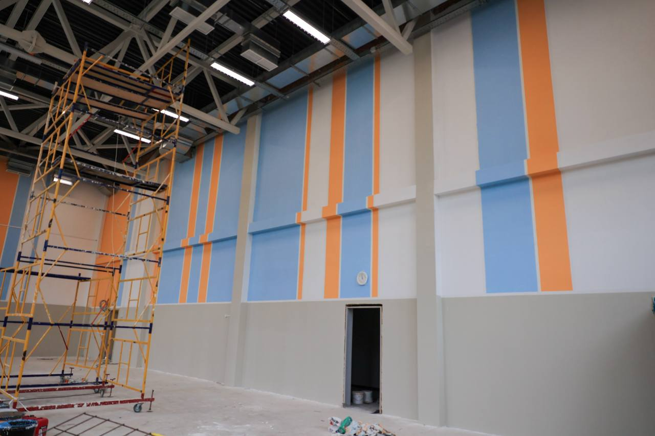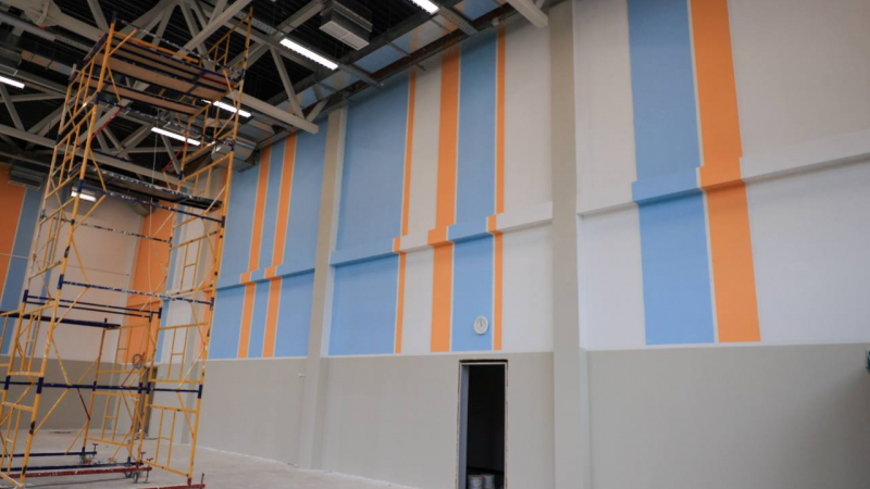 Внутри здания ведутся чистовая отделка, установка дверей, сантехники и сборка мебели, а также отделка спортивных и актового залов. Следующий этап – пуско-наладочные работы.