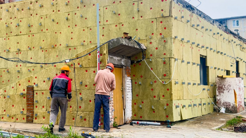 -  На объекте задействовано 200 рабочих. Продолжается ремонт фасада основного здания, проведено утепление фасада пищеблока.
