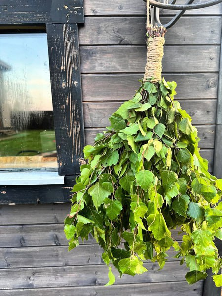 Изготовлен из веточек любимой русским народом берёзы. Представьте себе картину: заходите в баню, ощущаете мягкий шелест листьев, нежно бьющих вас по спине... Это берёзовый веник шепчет вам: «Дыши глубже!» Он заботится о вашей коже, чистит её лучше любого дорогого скраба и мочалки, и мышцы сразу понимают: да, жизнь -отличная штука!