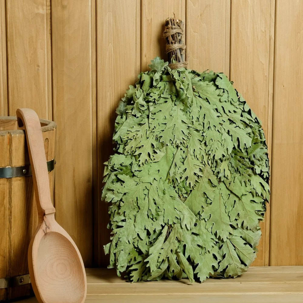Создан из молодых дубовых веточек, крепких и благородных. Такой веник намекает: если берёзовый — для новичков, то дубовый — это уровень профи. Его плотная структура позволяет мягко массажировать ваше бренное тело, словно убеждая сердце и сосуды: «Работайте дружнее, ребята!» После такого массажа чувствуешь себя героем, готовым лететь в Ленинград на улицу Строителей.