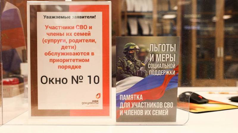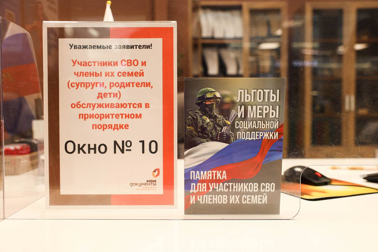 В двух офисах МФЦ г.о. Мытищи выделены отдельные окна, в которых участники СВО и члены их семей обслуживаются в приоритетном порядке: