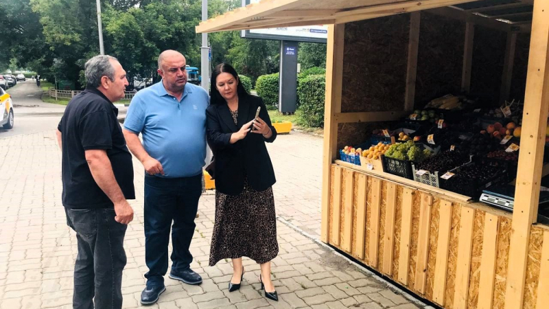 На улице Силикатной, возле дома № 39, расположилась палатка по торговле дарами богатого южного лета: на прилавке ягоды, фрукты, овощи, аппетитно манящие покупателей. Аналогичные торговые точки есть еще по нескольким адресам. Всего в округе на муниципальных территориях распложены десять торговых павильонов, получивших право торговли сезонной продукцией. Начальник управления потребительского рынка и услуг администрации городского округа Мытищи Елена Подмаркова проверила каждый адрес.