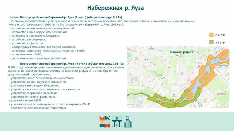 Набережная р. Яузы (завершим 2-й этап и приступим к 3-му)