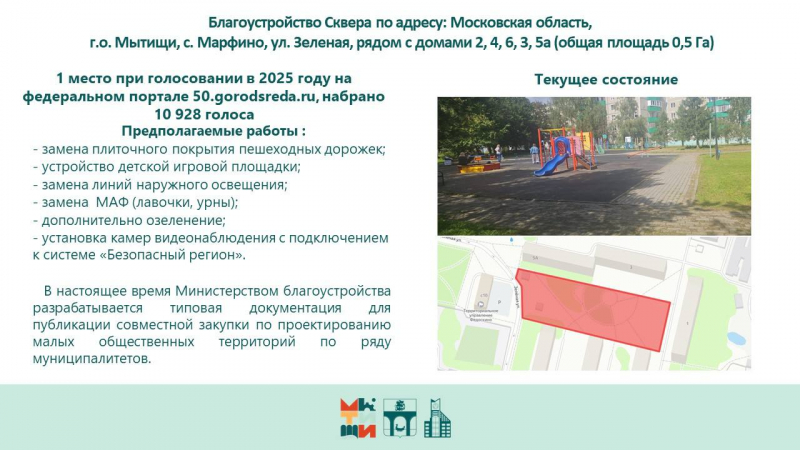 Сквер в с. Марфино, ул. Зеленая, рядом с домами 2, 4, 6, 3, 5А