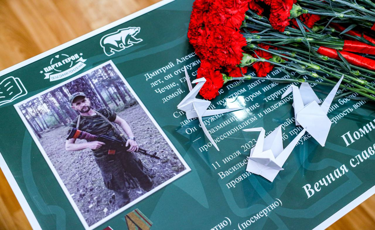 В рамках партийных проектов «Новая школа» и «Историческая память» в школе № 4 открыли Парту Героя в честь бойца специальной военной операции Дмитрия Александровича Васильева