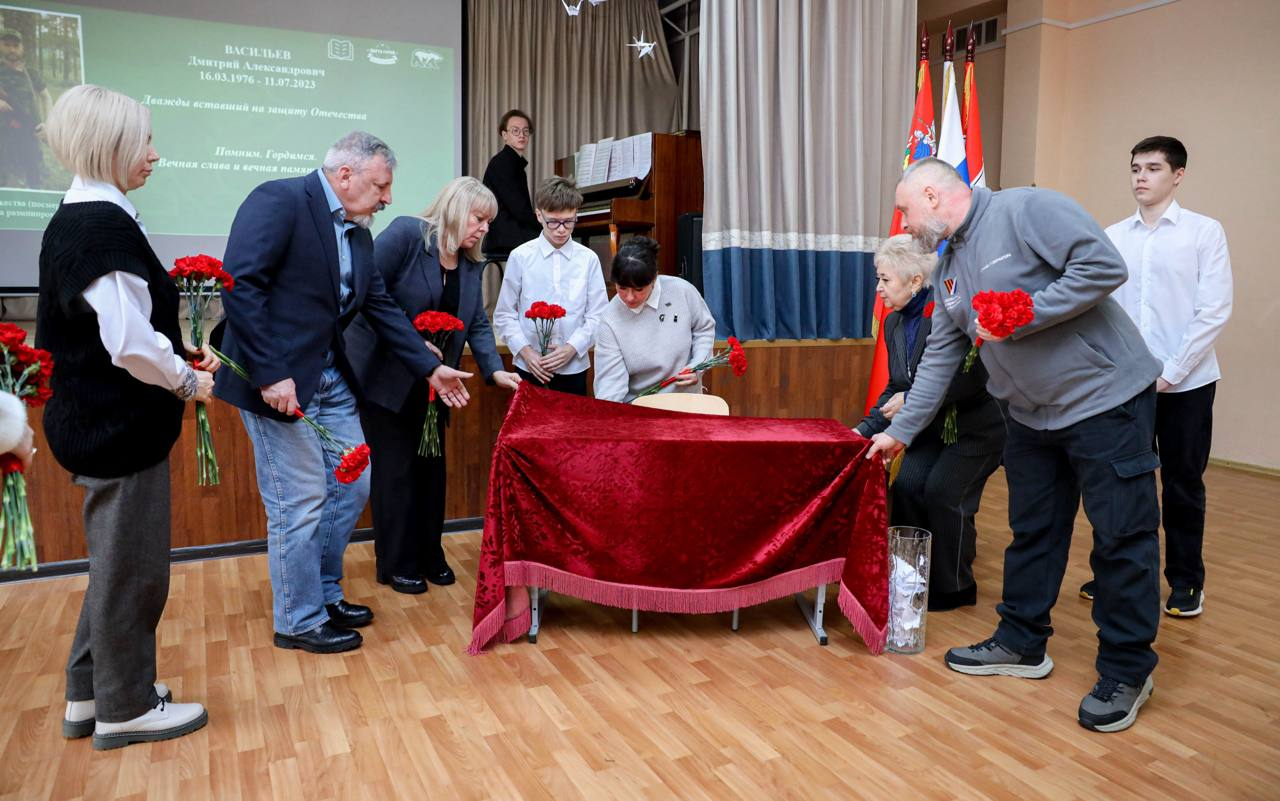 Почтить память нашего земляка пришли депутат от партии «Единая Россия» Наталья Гречаная, руководитель мытищинского отделения Ассоциации СВО Сергей Пудов, а также супруга бойца Оксана Владимировна, близкие и учащиеся школы.