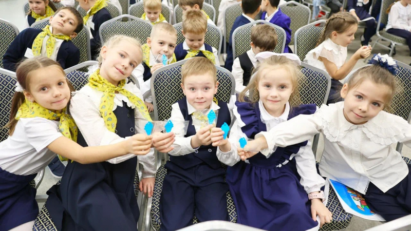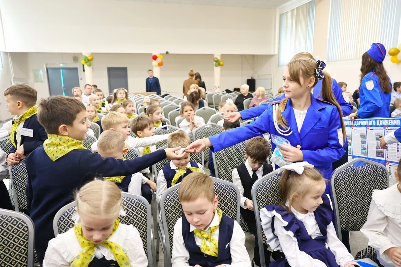 В завершение первоклашкам вручили светоотражающие аксессуары.