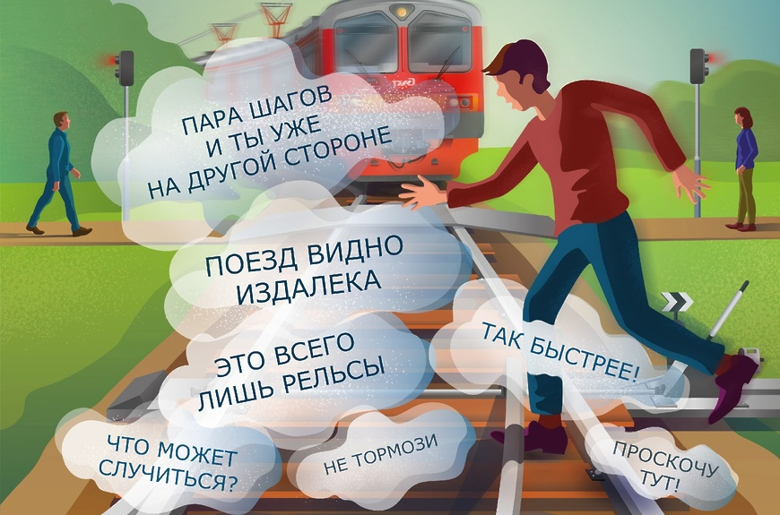 Переходить железнодорожные пути можно только в установленных и оборудованных для этого местах, убедившись в отсутствии приближающегося поезда или на разрешающий сигнал переездной сигнализации. При переходе по пешеходному переходу снимайте наушники и капюшон, они могут помешать вам заметить приближающийся поезд.