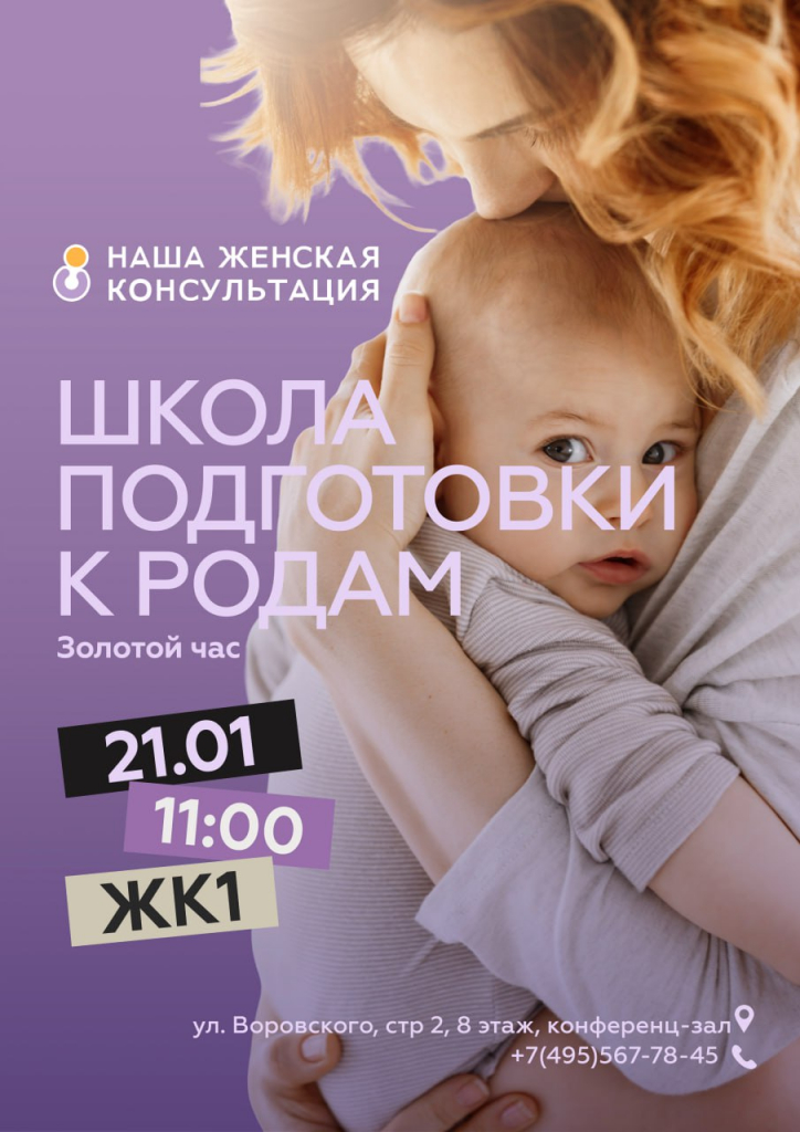 21 января в 11:00 мы приглашаем вас на важное занятие по подготовке к родам. Встреча пройдёт по адресу: ул. Воровского, стр. 2, 8 этаж, конференц-зал.
