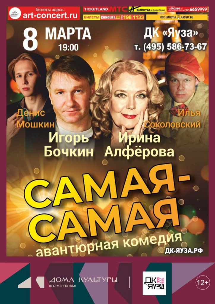 Более 100 врачей и медицинских сестер посетили комедийный спектакль «Самая-самая» в ДК «Яуза». В Международный женский день 8 марта профсоюзная организация Мытищинской больницы подарила виновницам торжества порцию искреннего смеха, романтики и истинного наслаждения от великолепной игры знаменитых российский артистов. На сцене мытищинского Дворца культуры блистали звезды первой величины: народная артистка России Ирина Алфёрова и народный артист России Игорь Бочкин.