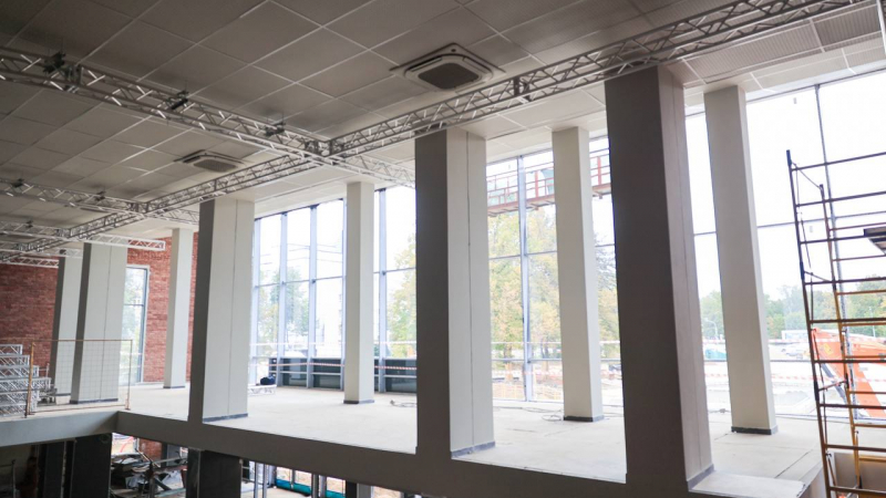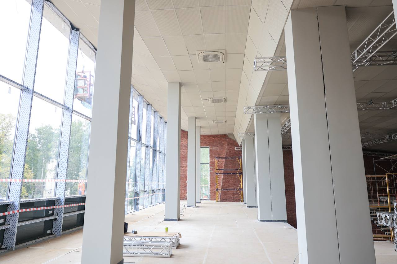 В здании театра завершаются строительно-монтажные работы. Также продолжаются чистовая отделка помещений и подключение инженерных коммуникаций. Параллельно выполняются фасадные работы и благоустройство прилегающей территории.
