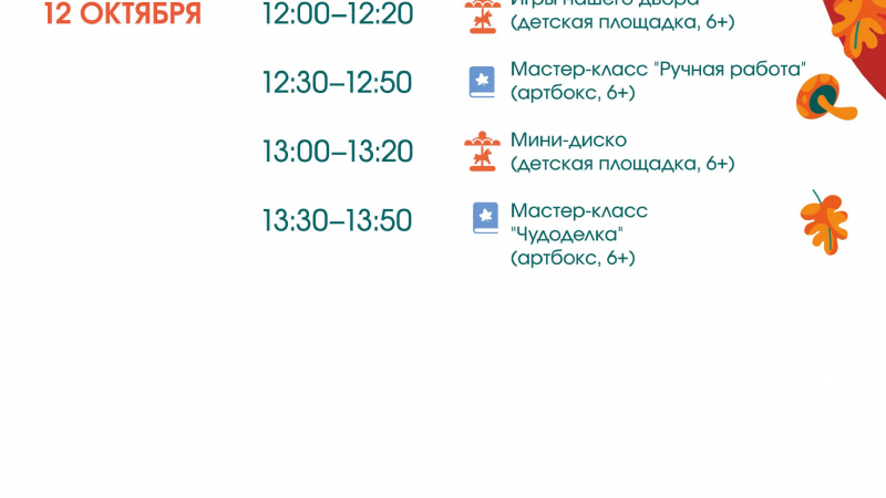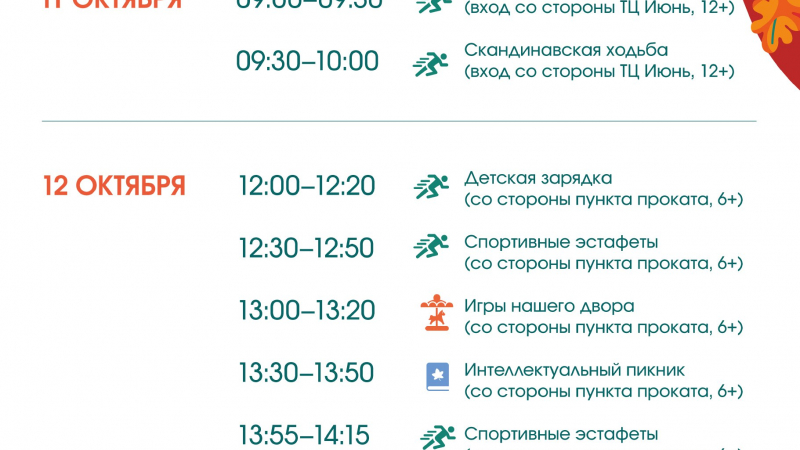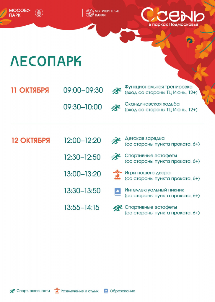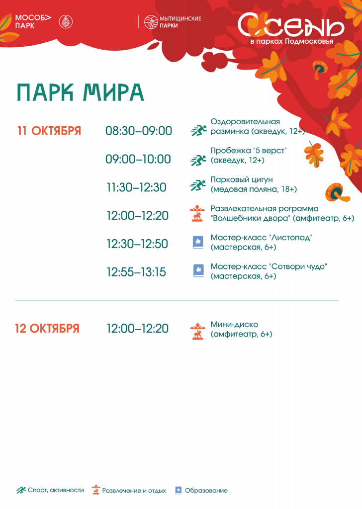Расписание мероприятий в парках 11-12 октября