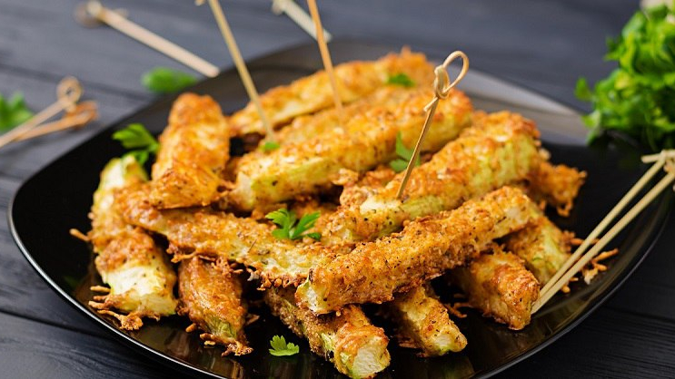 Неделя популяризации употребления овощей, которую проводит Минздрав России – повод напомнить о том, что это не только полезно, но и очень вкусно! Хочу порадовать наших подписчиков несложной, но очень вкусной закуской на основе кабачков. Признаюсь, что на 100% это блюдо диетическим считать нельзя из-за способа приготовления: обжарка на растительном масле. Но это компенсируется отменным вкусом и высоким содержанием полезных веществ в правильном сочетании.