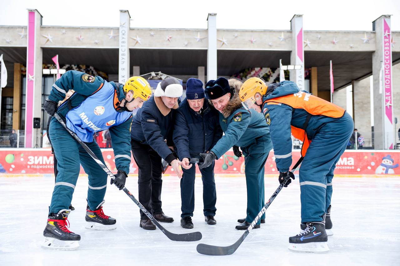 Спасатели на льду: в Мытищах прошел хоккейный матч между сотрудниками МЧС