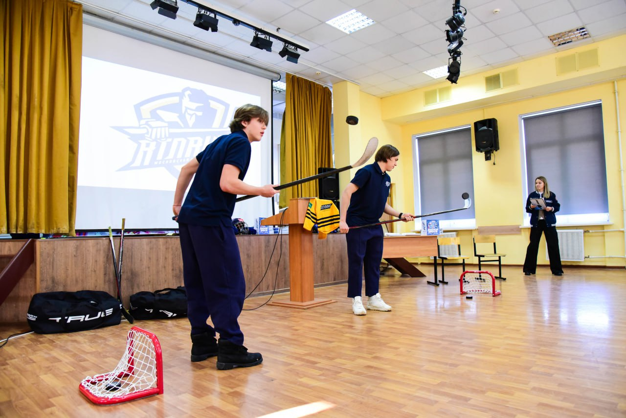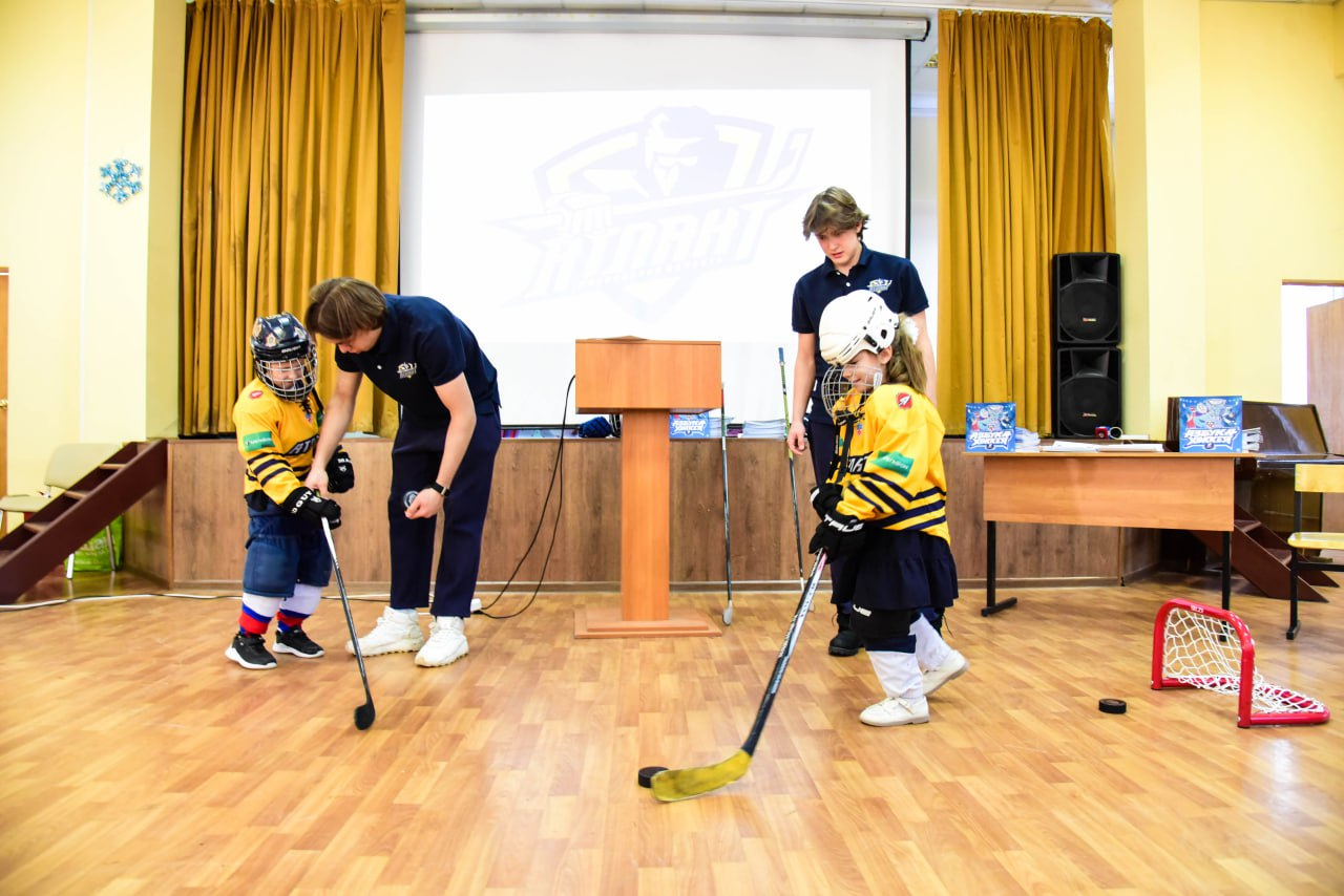 Детям показали мультфильм «Вселенная хоккея», который в увлекательной форме познакомил их с правилами игры и ее особенностями. После просмотра школьники примерили хоккейную экипировку, попробовали себя в роли группы поддержки спортивной команды, станцевав вместе с талисманом клуба Алабаем и даже потренировались в броске шайбы в мини-ворота.