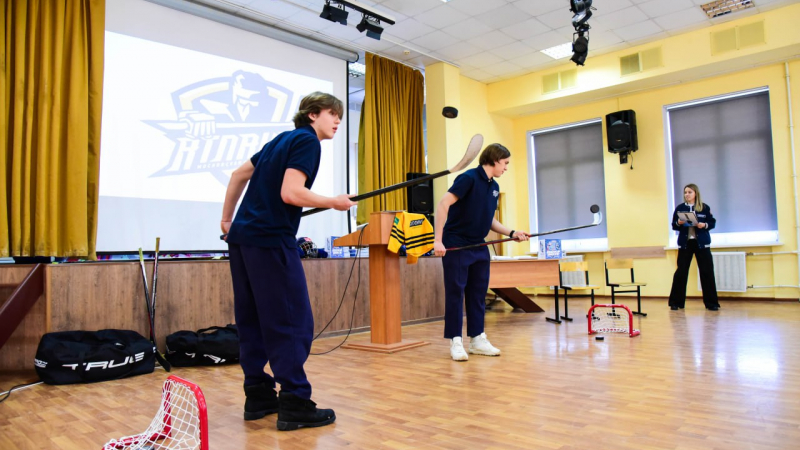 Молодежная хоккейная команда «Атлант» совместно с представителями СШОР по хоккею провели в школе № 6 занятие в рамках проекта «Урок хоккея».
