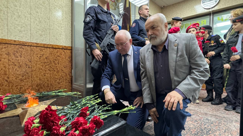 В знак глубокого уважения и скорби участники церемонии почтили память ушедших товарищей минутой молчания и возложили к мемориалу живые цветы.