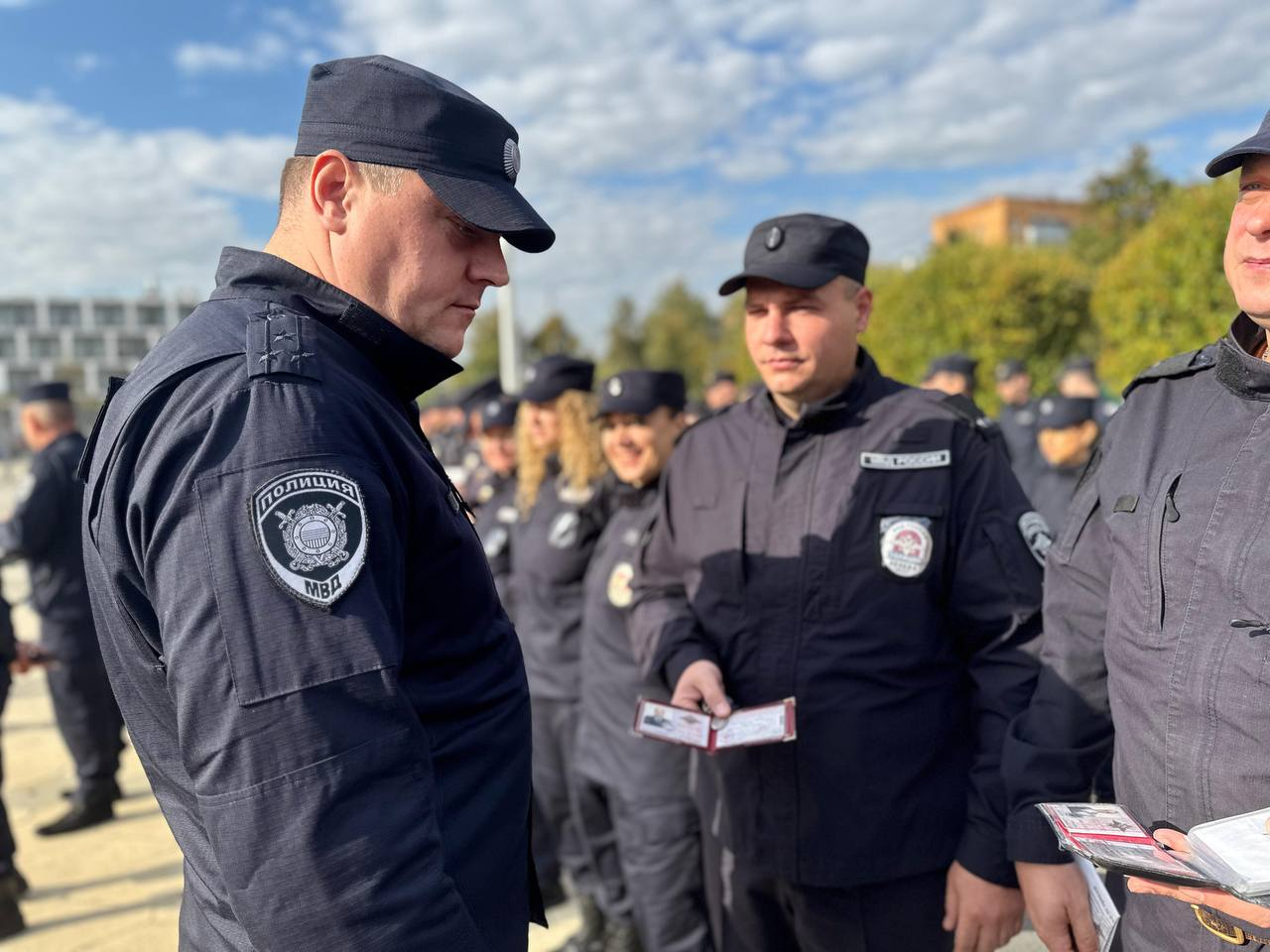 Заместитель начальника Управления - начальник по работе с личным составом МУ МВД полковник полиции Наталья Филькина проверила наличие нагрудных знаков, жетонов с личным номером и служебных удостоверений с соответствием данных по должности и званию.