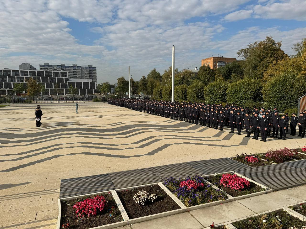 На площади перед Домом культуры Яуза прошел строевой смотр личного состава МУ МВД России «Мытищинское», где начальник МУ МВД полковник полиции Николай Жуков проверил соответствие форменного обмундирования и внешнего вида сотрудников установленным нормам для несения службы на полигонах.