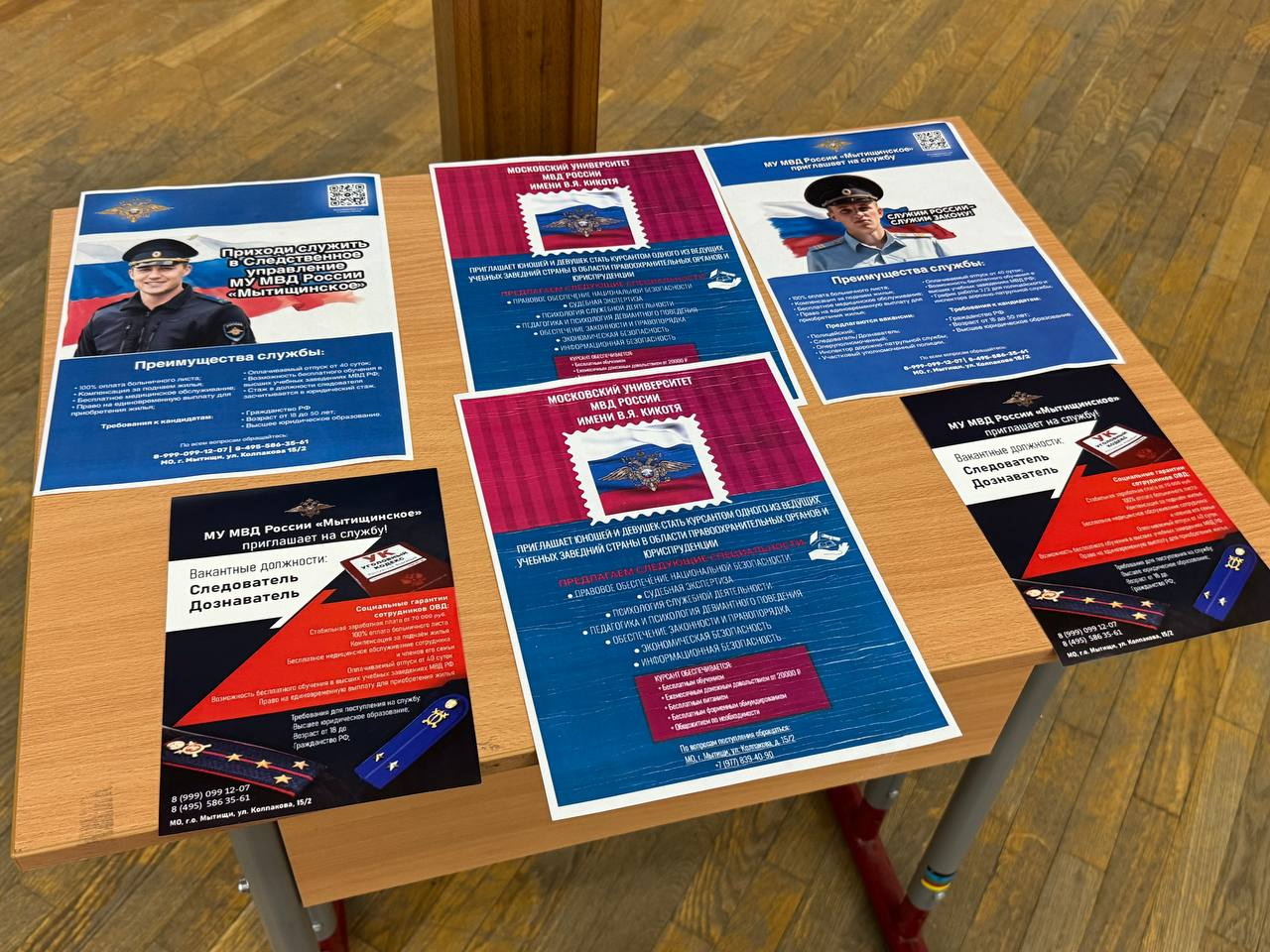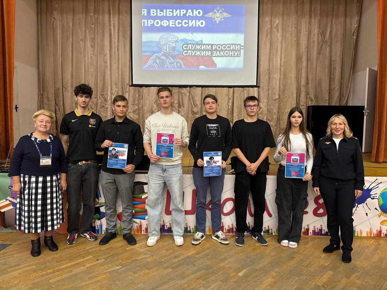 В рамках акции «Моя профессия - полицейский» представительница Общественного совета при МУ МВД России «Мытищинское» Татьяна Бельмачева представила учащимся одной из школ города видеоматериал, посвященный Московскому университету МВД России имени В.Я. Кикотя и деятельности Управления.