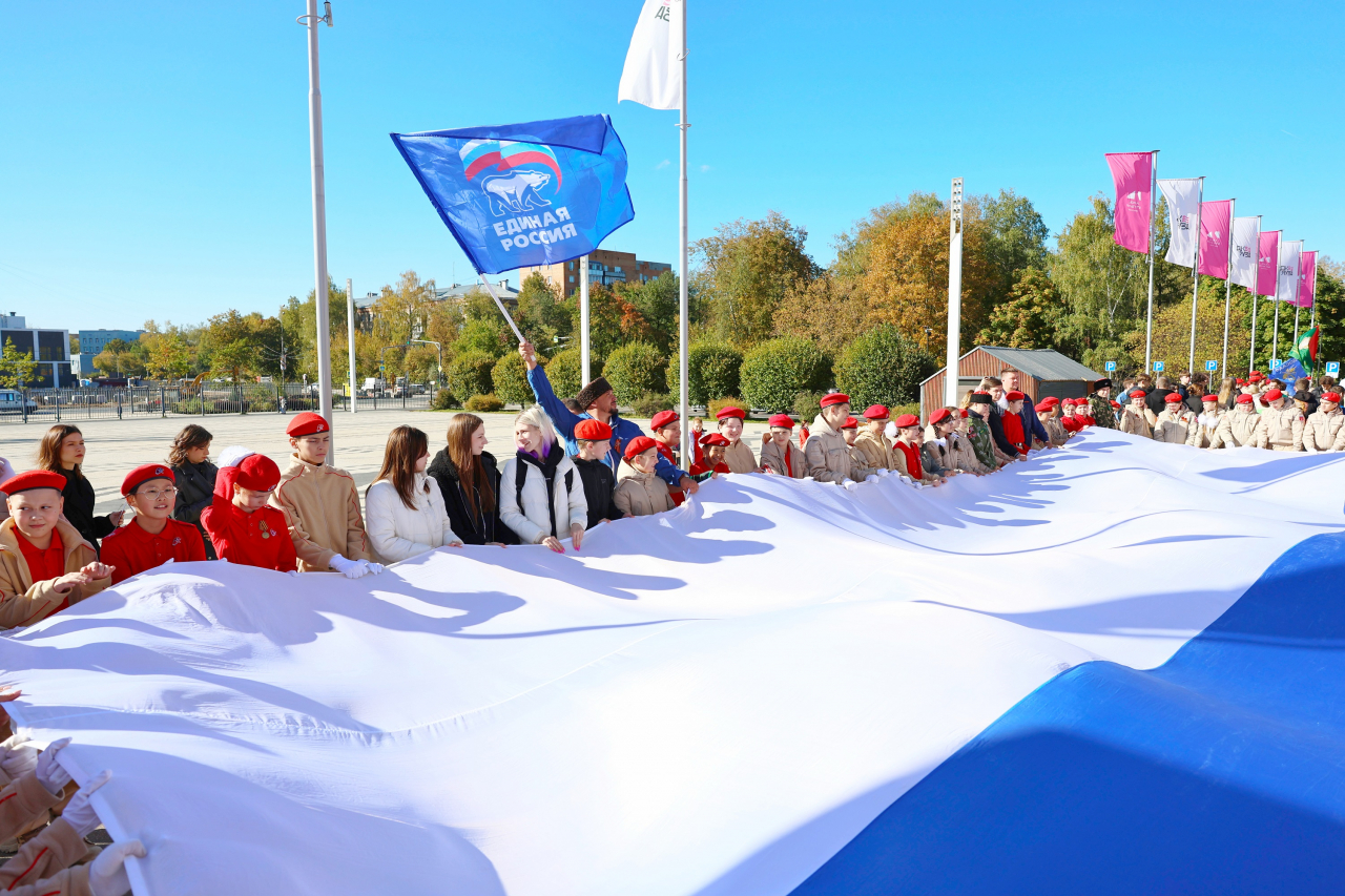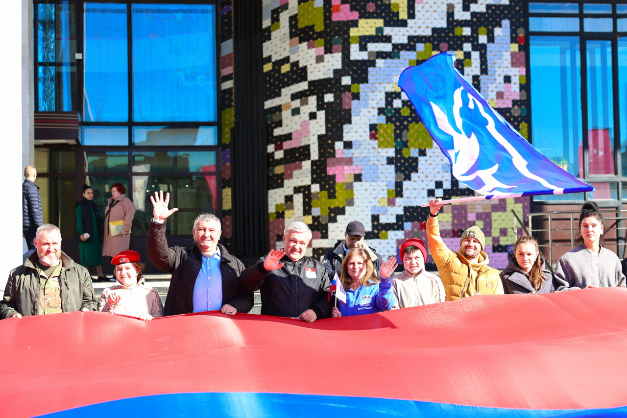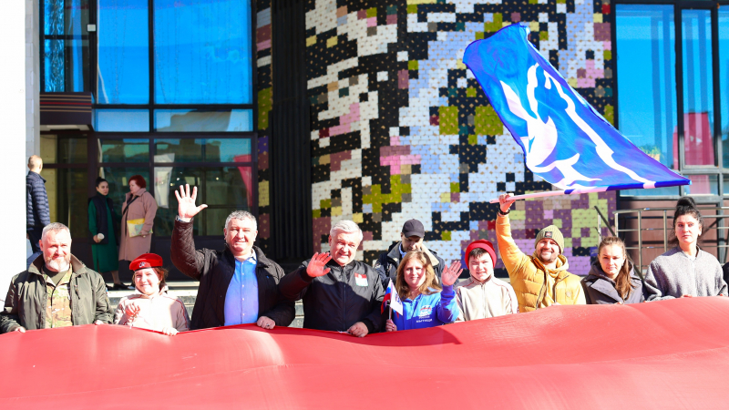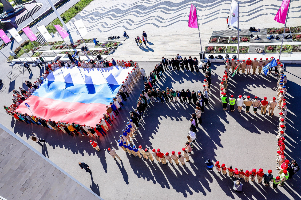 Сердцем мероприятия стало символическое действие, участники флешмоба вместе развернули огромный яркий флаг Российской Федерации, который стал олицетворением суверенитета и единства всей большой страны.