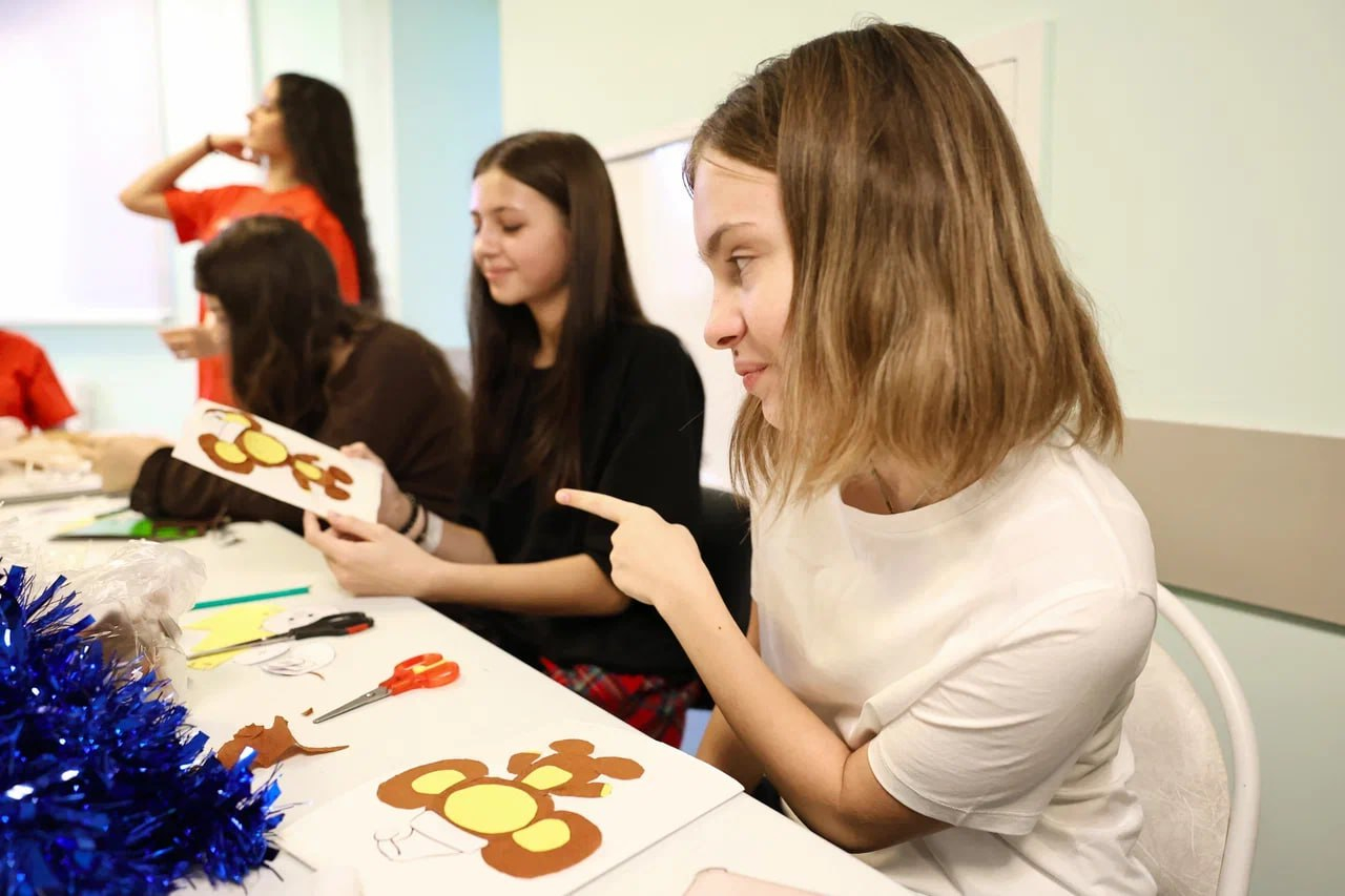 Волонтеры «Движения Первых» посетили НИКИ детства, где провели творческий мастер-класс по шитью в рамках акции «Чебурашки СВОим» в поддержку участников специальной военной операции.