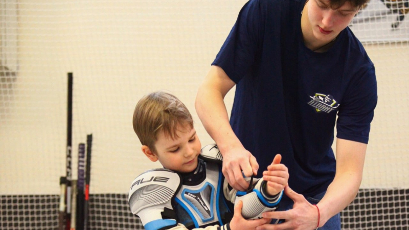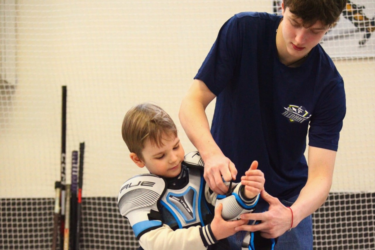 Перед началом занятий ребята посмотрели мультфильм «Вселенная хоккея», где узнали много нового об этом виде спорта. Тренер СШОР по хоккею Московской области Иван Большов объяснил ребятам основные правила игры.