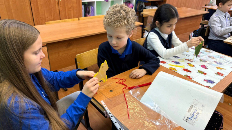 В рамках акции активистки совместно с учениками начальных классов школы № 24 провели творческий мастер-класс по изготовлению новогодних поделок: ёлочек и праздничных открыток.