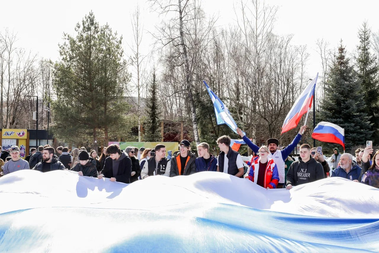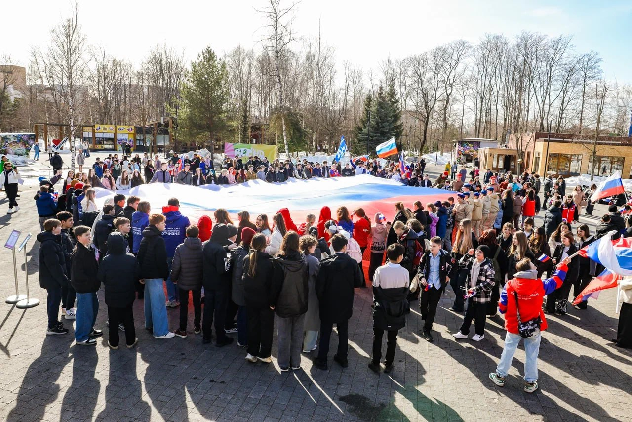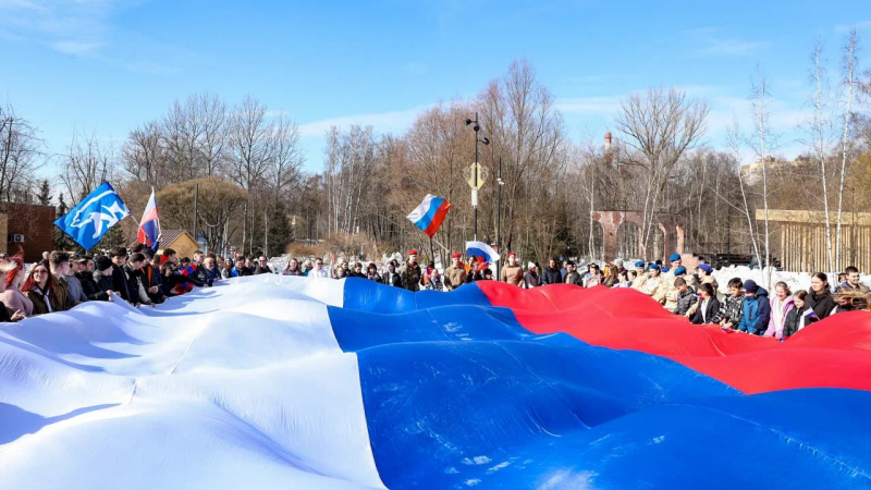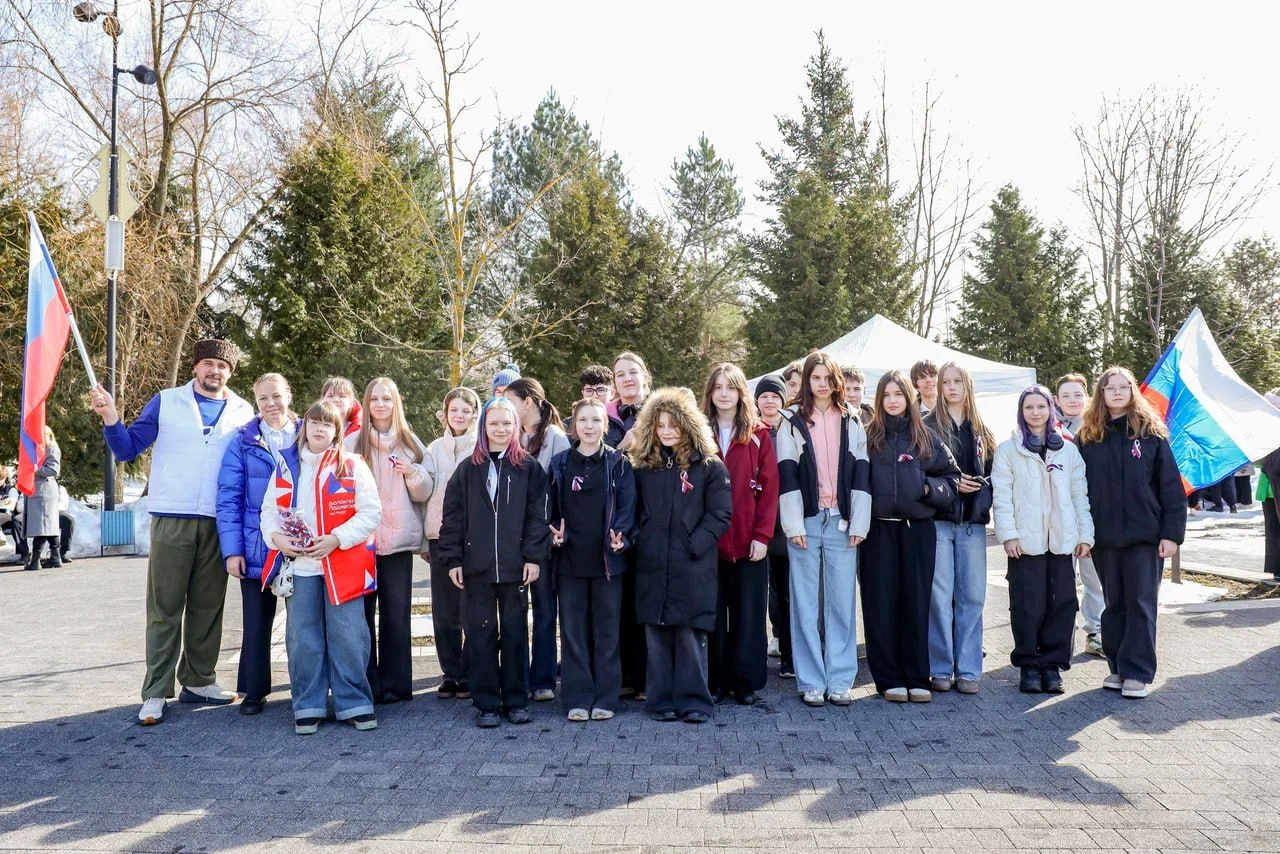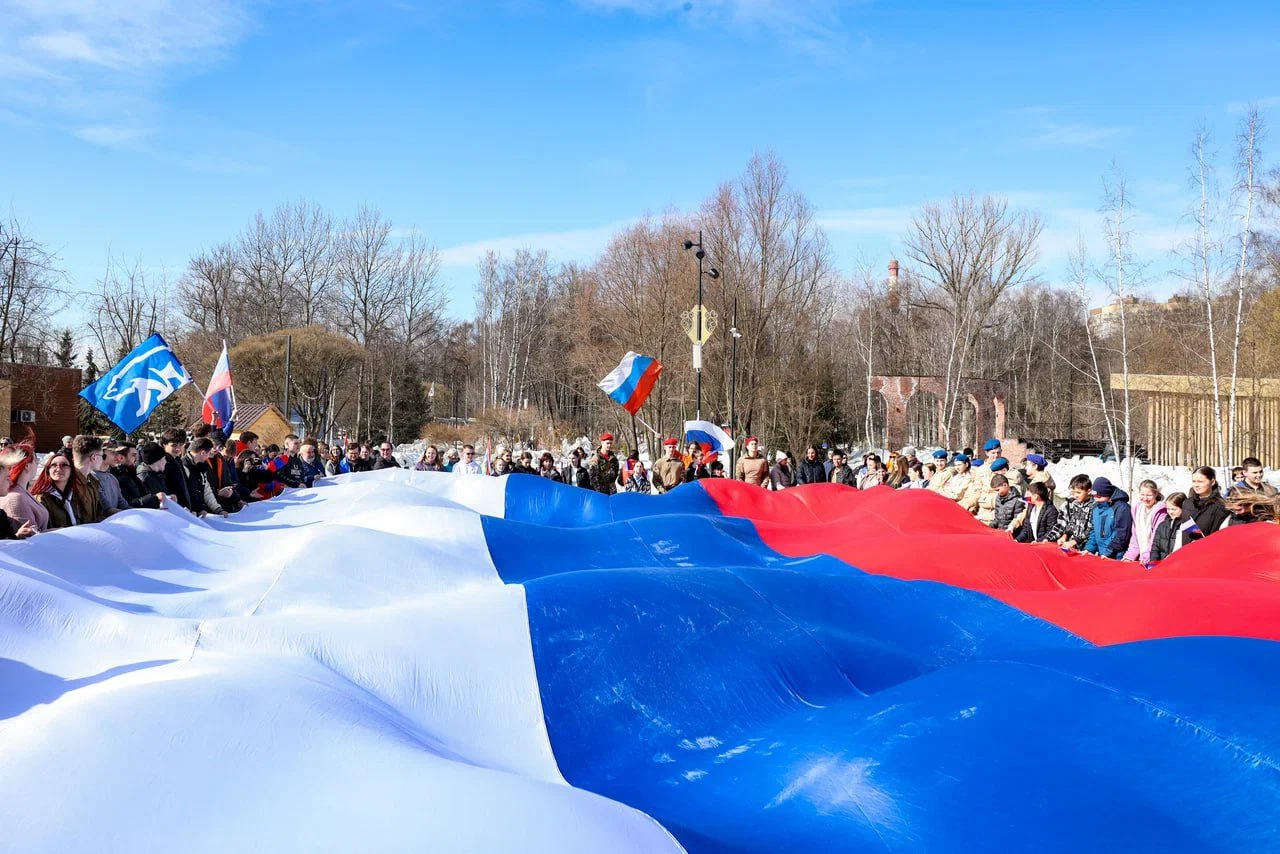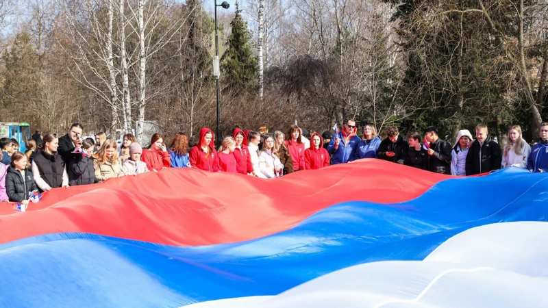 В городском округе Мытищи состоялся патриотический флешмоб, приуроченный ко Дню воссоединения Крыма с Россией. Мероприятие прошло в Центральном парке культуры и отдыха, объединило молодёжь и активных жителей округа