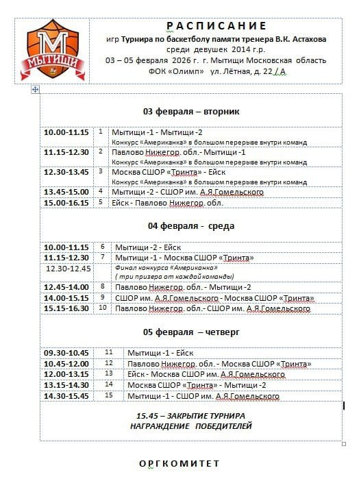 С 3 по 5 февраля в ФОК «Олимп» пройдет турнир, посвященный памяти выдающегося тренера Владимира Константиновича Астахова, который оставил неизгладимый след в истории мытищинской СШОР по баскетболу.